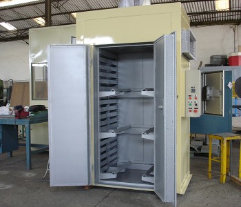 As estufas estacionárias de secagem têm uma perfeita homogeneização do ar e temperatura interna, fazendo a recirculação constante, aumentando assim a qualidade dos produtos a serem secados e com um baixo consumo. Ecologicamente projetadas, atendendo as necessidades do usuário e produto, com o melhor custo beneficio, através da perfeita homogeneização interna, com o balanceio entre temperatura e ventilação, obtendo assim o melhor rendimento do processo, e acelerando secagens e polimerizações dentro da câmara.